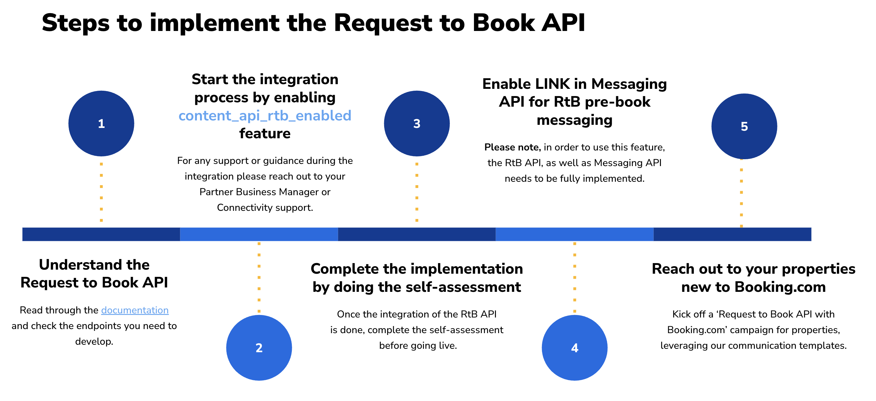 Once the business stakeholders agree on implementing the Request to Book API, we recommend that technical teams review our API documentation. If you’re a managed Connectivity partner, you can also reach out to your Partner Business Manager for additional best practices.